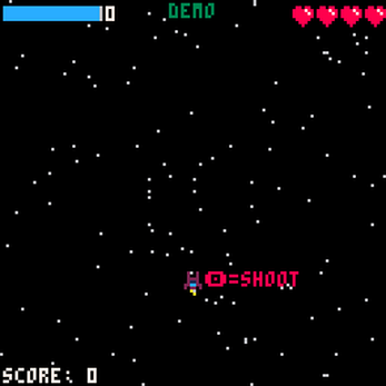 The basic space shooter elements of this game's code were made using ztiromoritz's fantastic Pico-8 tutorial which you can find here. The rest of the game was made for Yohahi's Floppy Jam. Please enjoy!