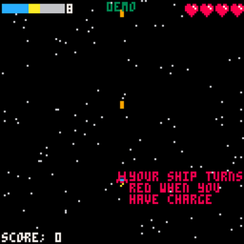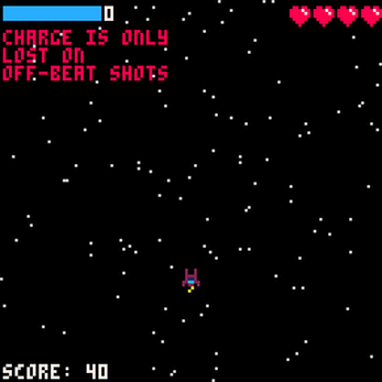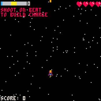 Beatship is a test-your-luck rhythmic space shooter where shooting on beat allows you to use a powerful beam weapon but one misfire and your combo resets to 0. Do you play it safe and sit on the charge you've built up or risk it to restore much needed health? Check out the screenshots for a quick tutorial or leave the menu screen running for a bit to see an in game demo